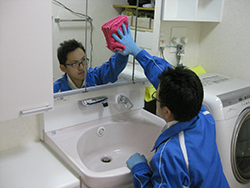 - 洗面化粧台の収納棚に物が置いている場合はその場の状態に応じた出来る範囲内の清掃となります。なにも置いていない状態であればスミズミまで清掃させていただきますので内部までの清掃をご希望の場合はお手数ですが、収納されている物を事前に取り出していただきますよう、お願いいたします。
